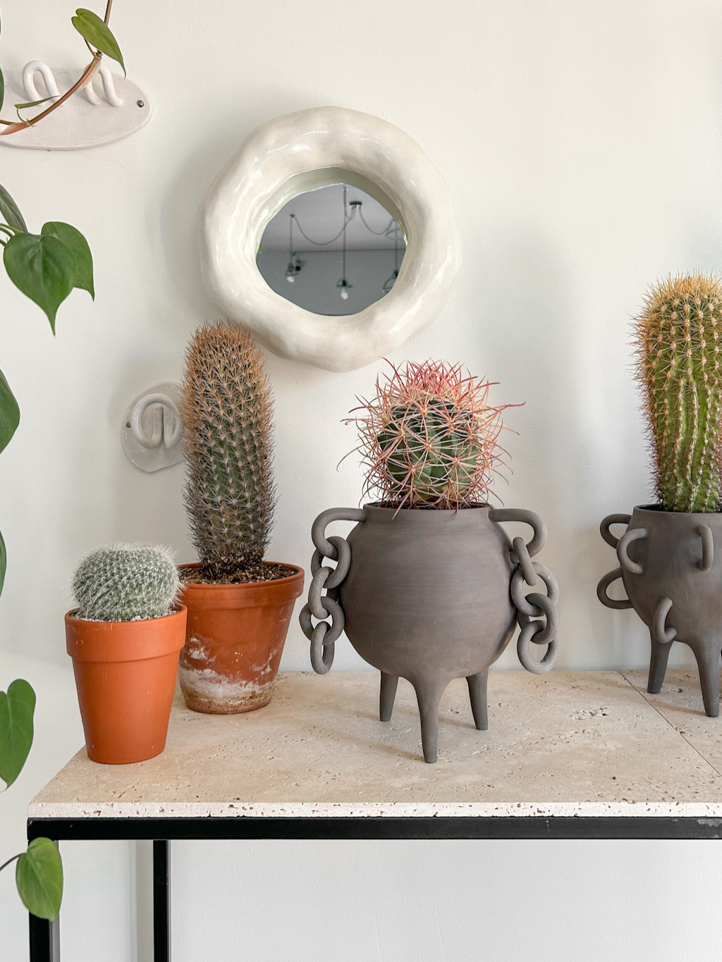 Autorský květináč s kaktusem a řetězy