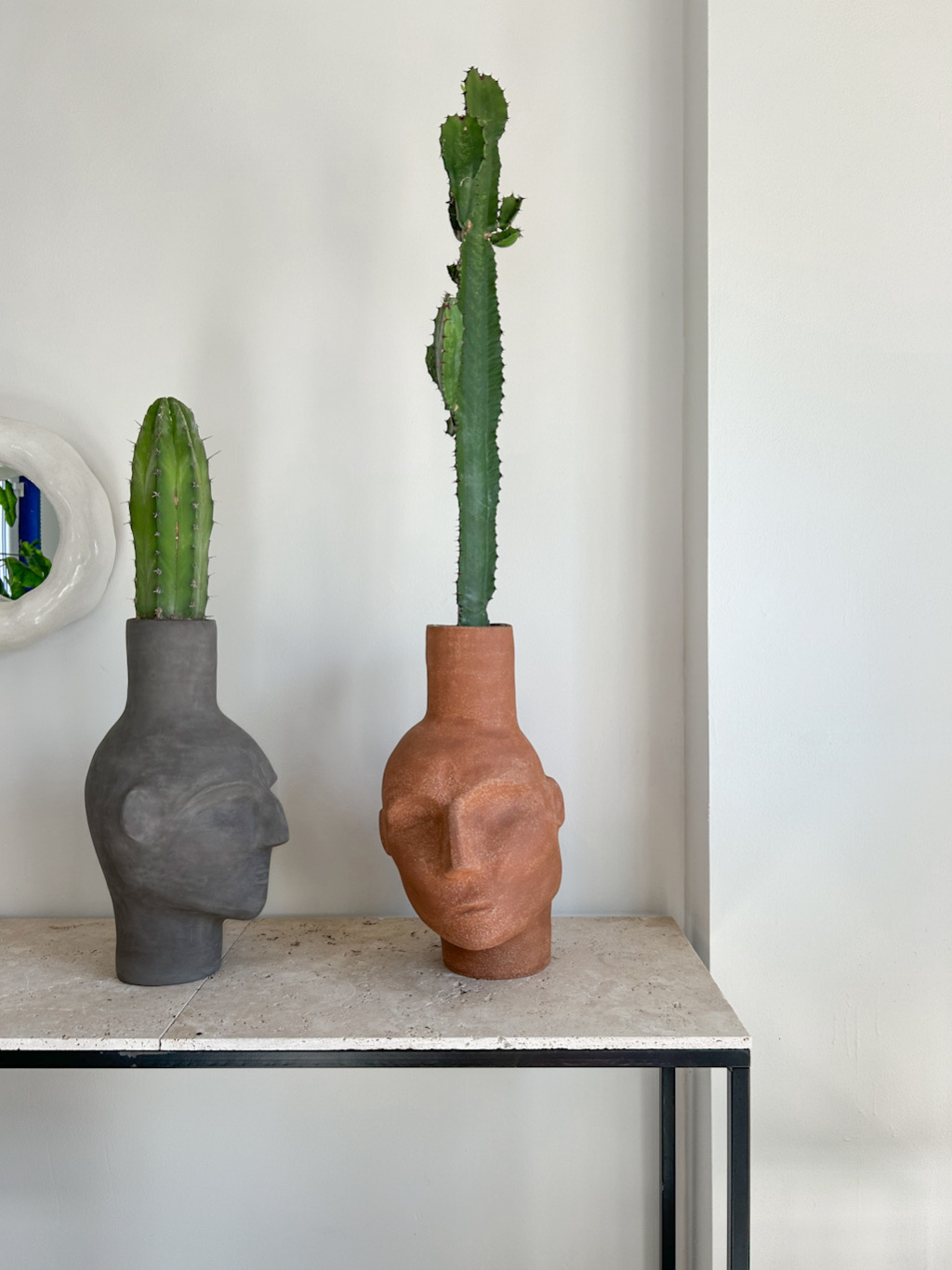Ručně vytvořená váza z pálené keramiky. Váza je doplněna o Euphorbii zasazenou v substrátu (na první fotce vpravo).