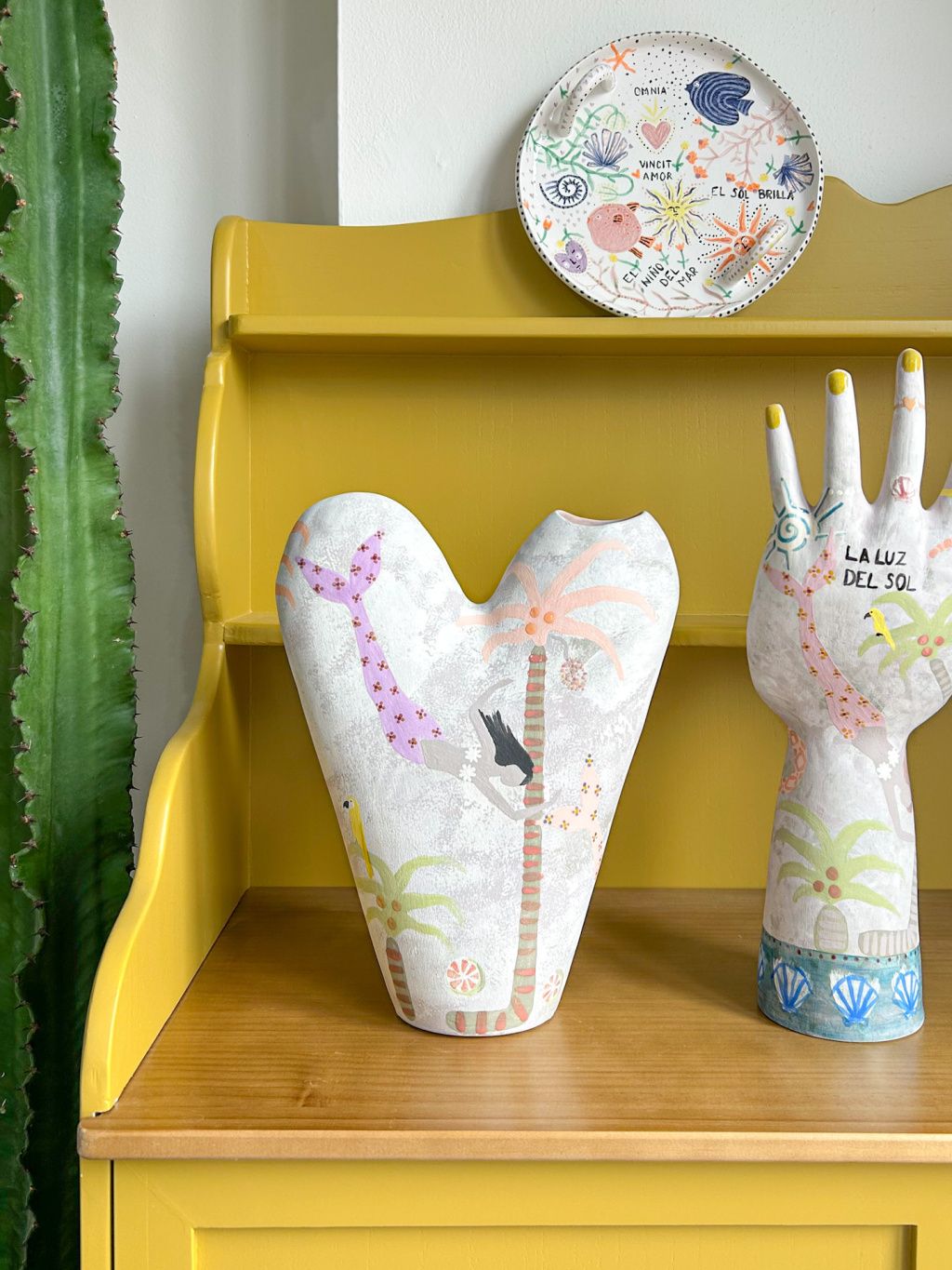 Ručně vytvořená váza z pálené keramiky. Váza je dozdobena přímořskými motivy a mořskými pannami.