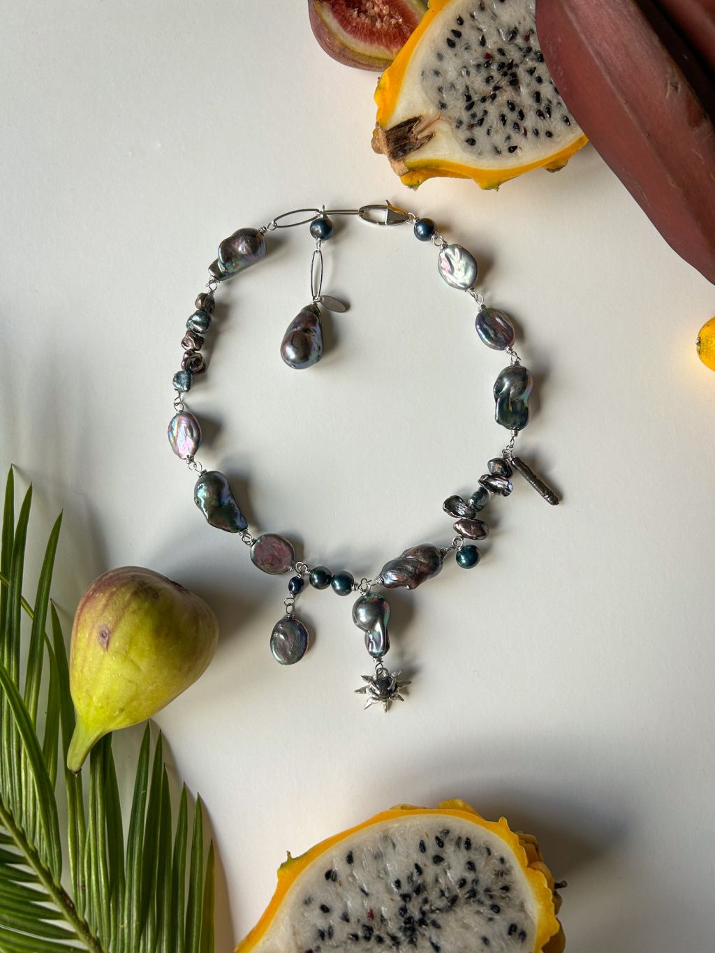 Amulet noci je ručně vyrobený náhrdelník z chirurgické oceli a z pravých černých říčních perel. Srdcem náhrdelníku je přívěsek z černé perly zasazený v útvaru z pájeného cínu.