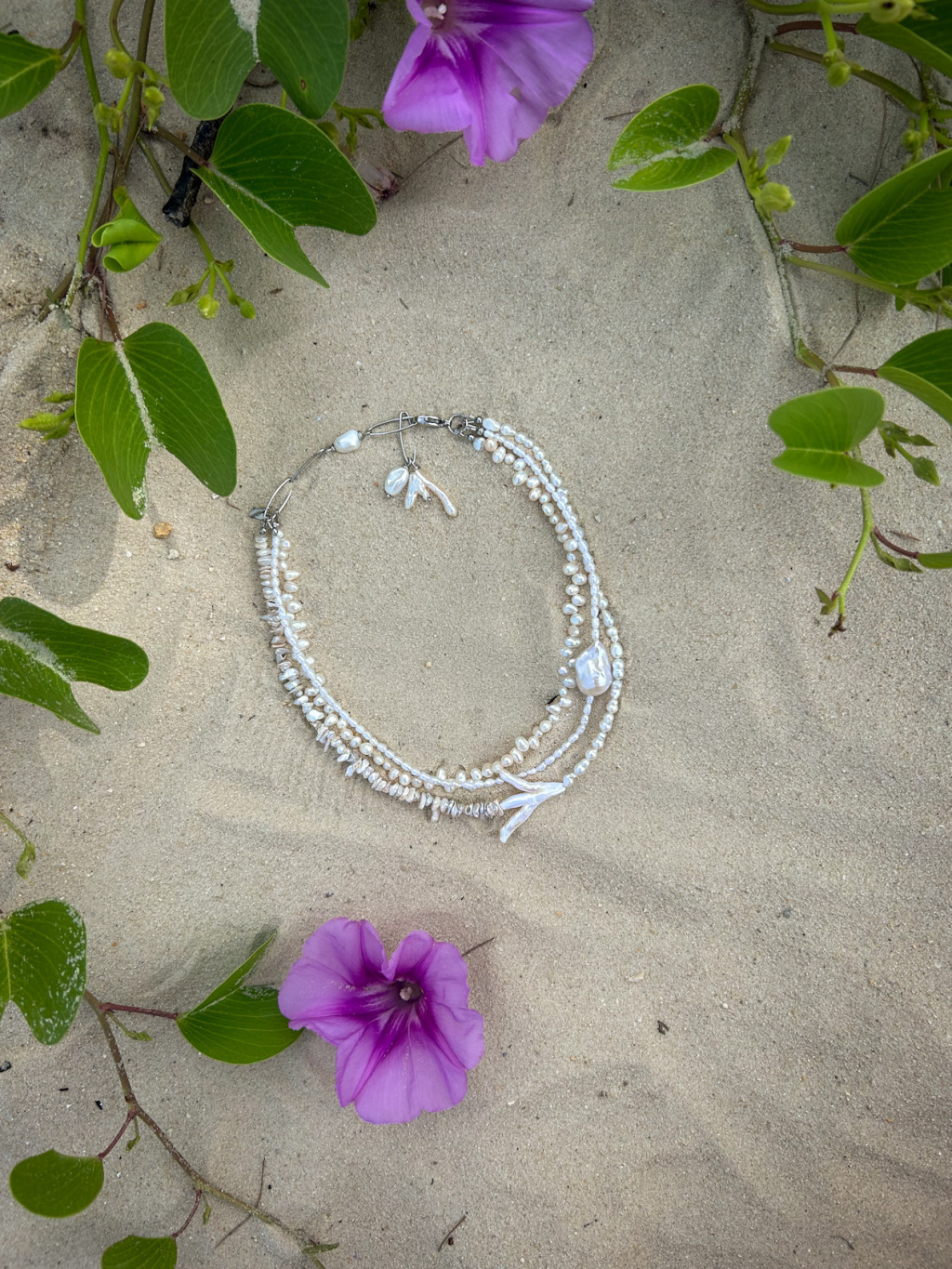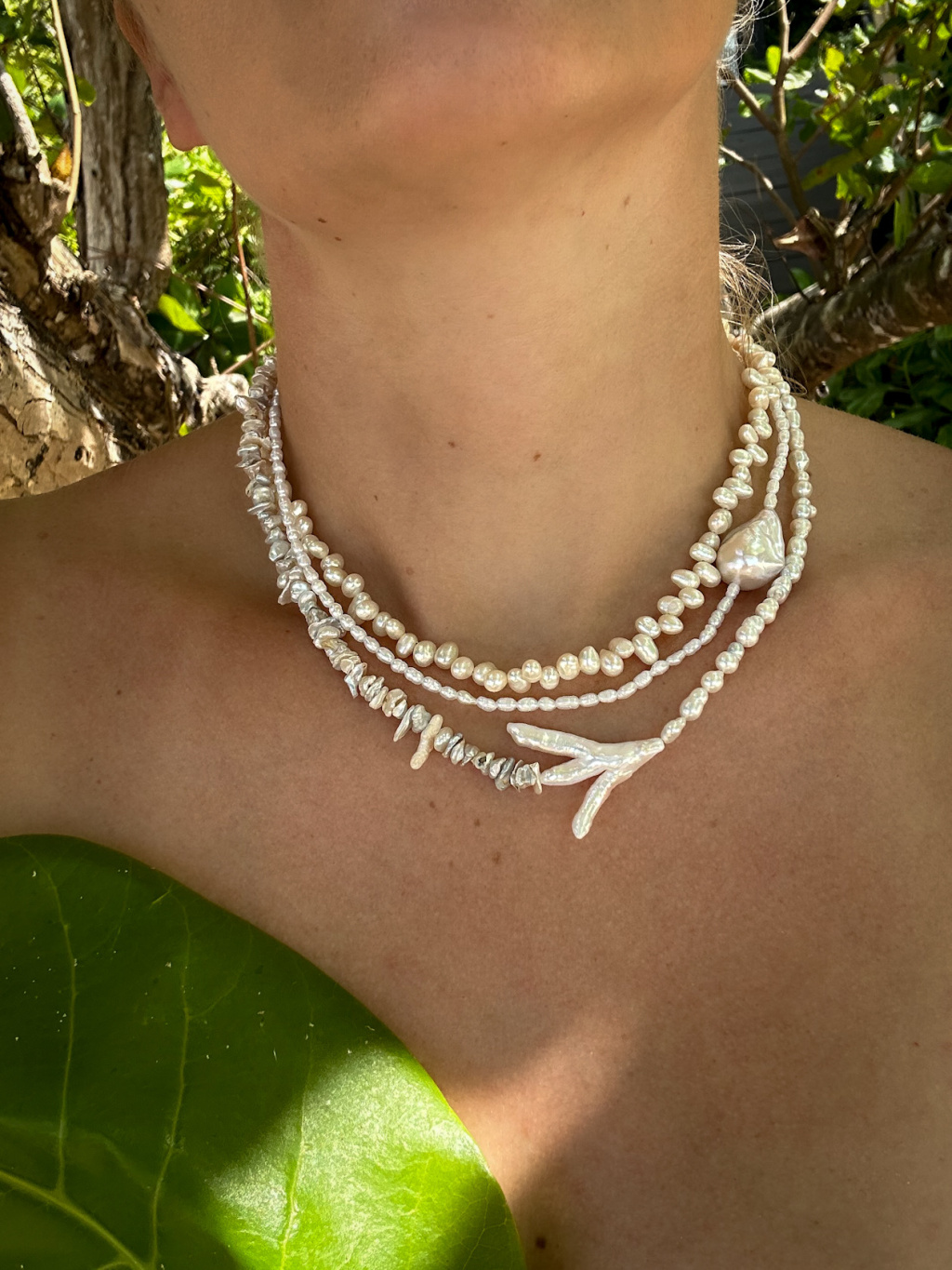 Ručně vyrobený náhrdelník z pravých říčních perel a chirurgické oceli.
