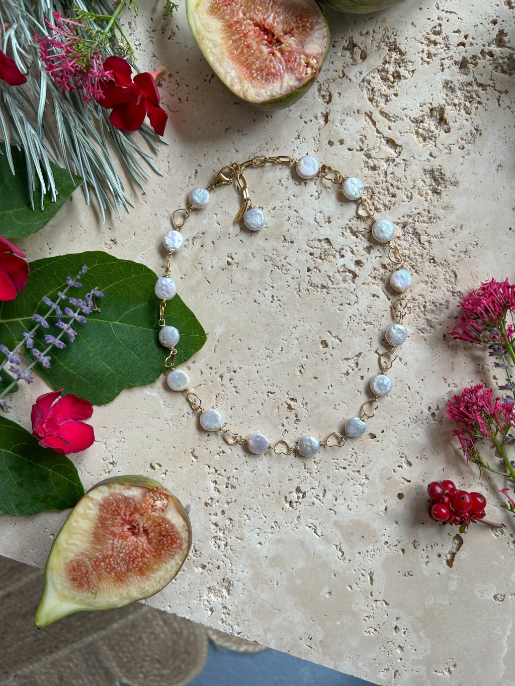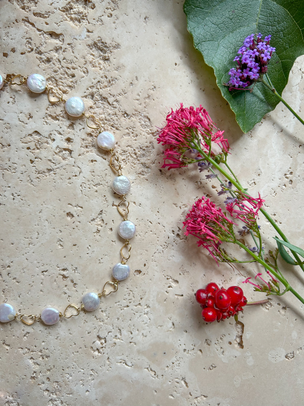 Ručně vyrobený náhrdelník z pravých říčních perel a z pozlacené chirurgické oceli.