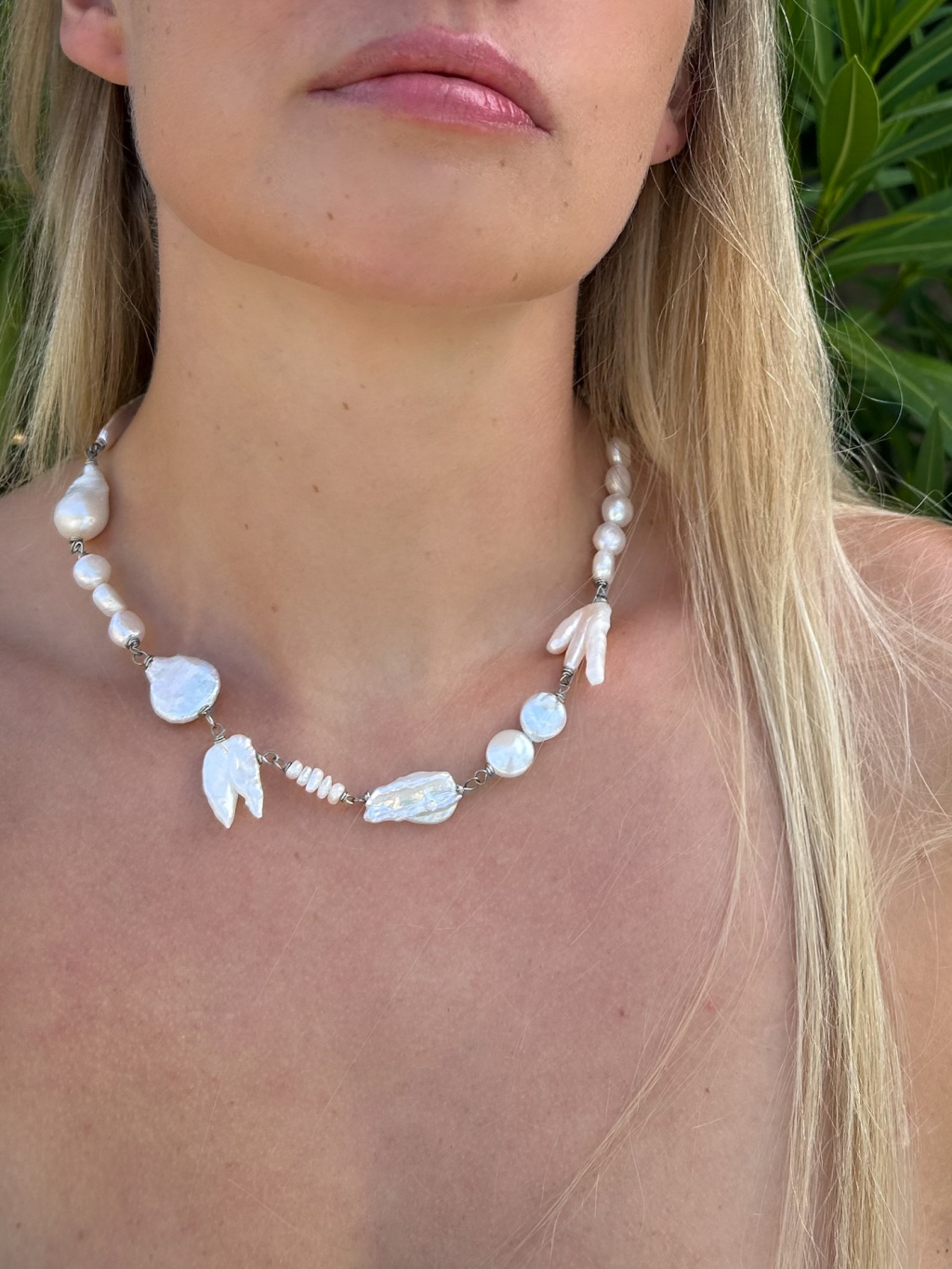 Ručně vyrobený náhrdelník z chirurgické oceli a z pravých říčních perel.