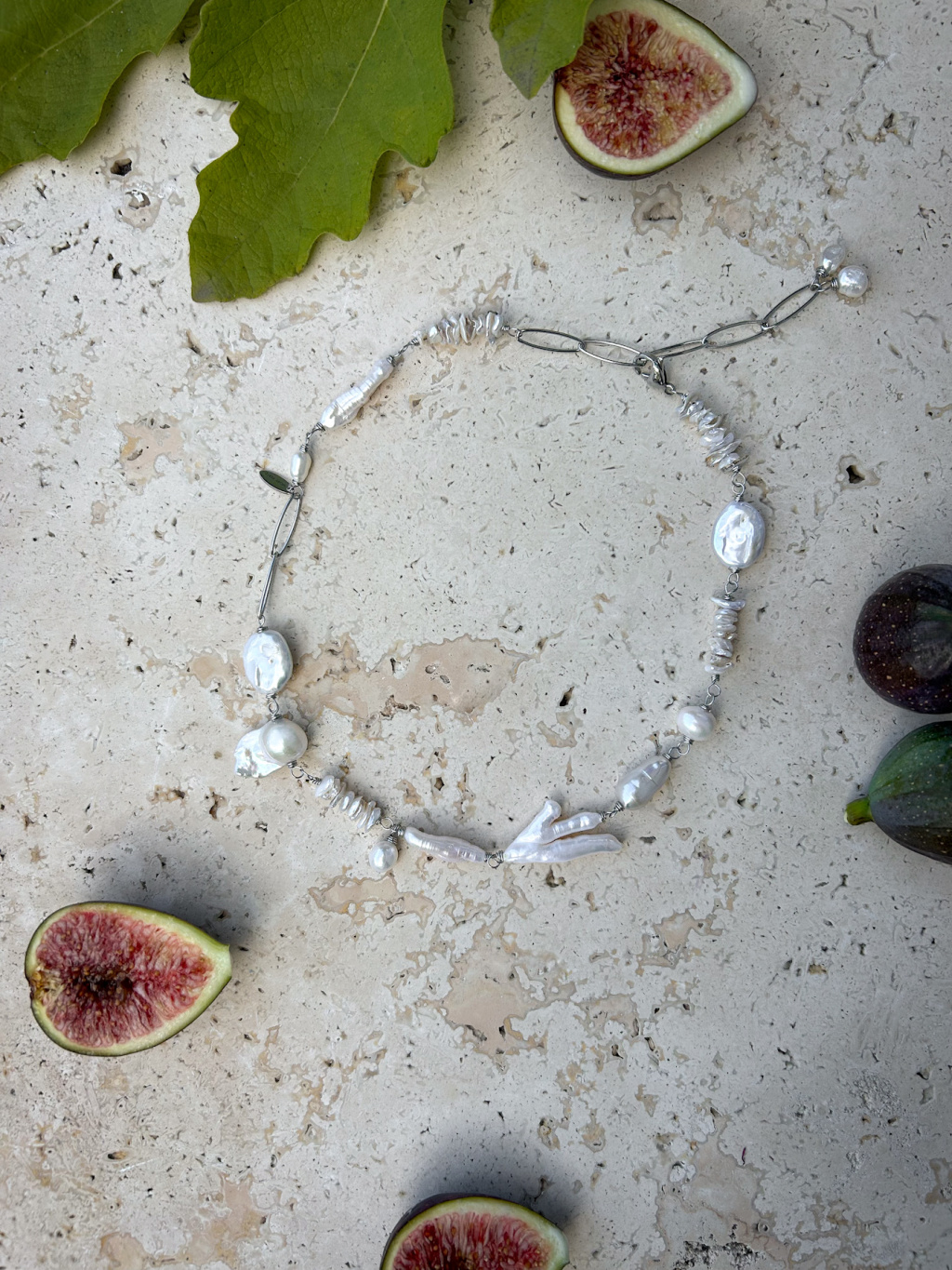 Ručně vyrobený náhrdelník z chirurgické oceli a z pravých říčních perel.