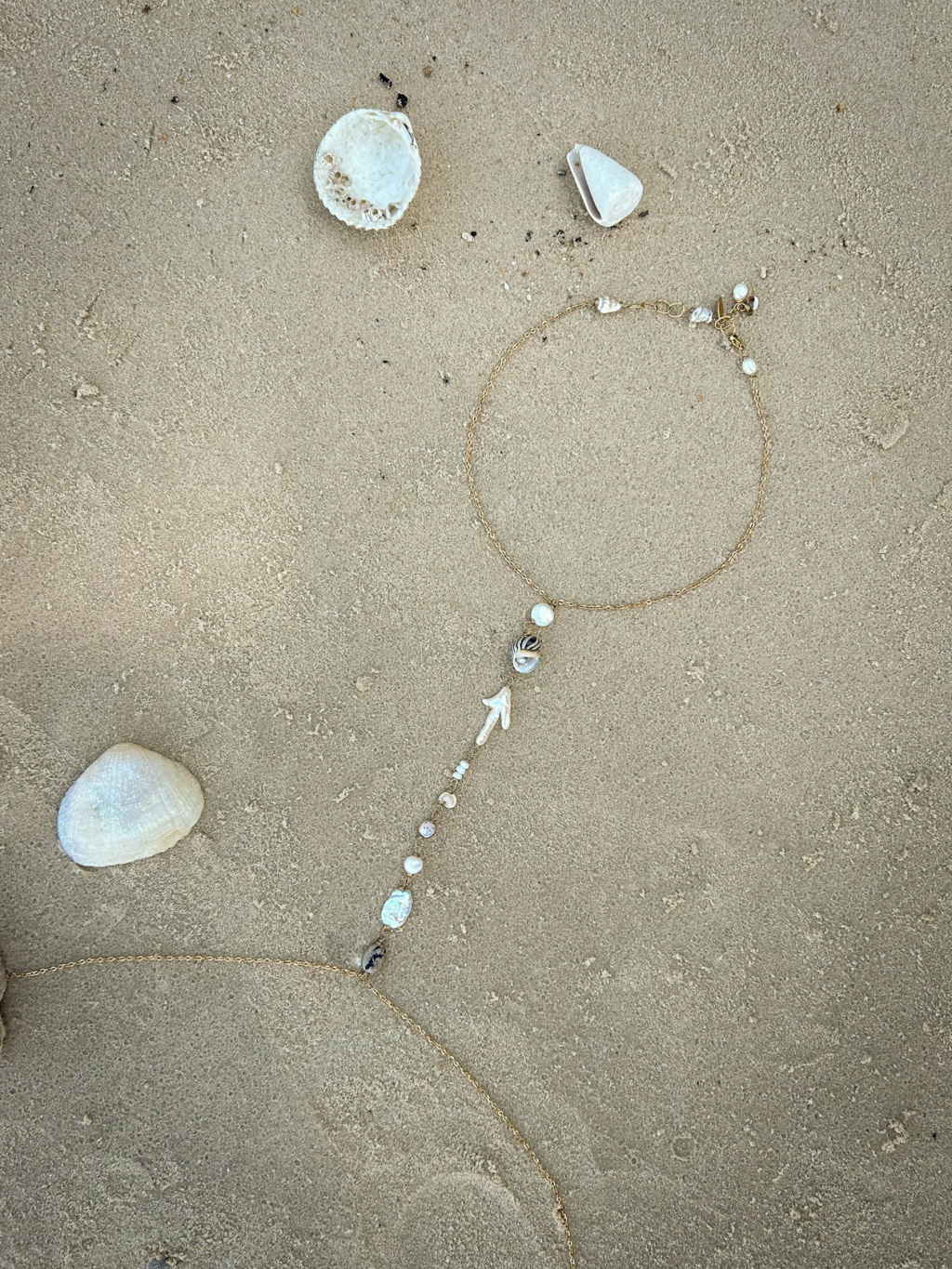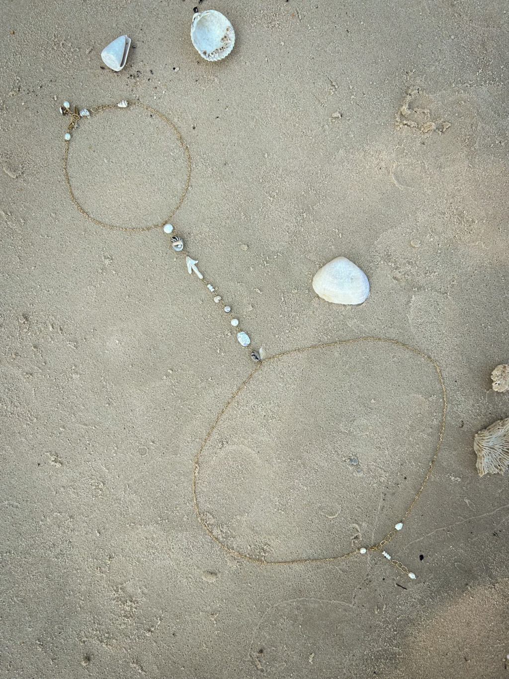 Ručně vyrobený náhrdelník přes celé tělo z pravých říčních perel a pozlacené chirurgické oceli. Délka náhrdelníku okolo krku je 41-49 cm (u náhrdelníku lze puzetkou upravovat délku), délka okolo břicha je 86-94 cm (taktéž lze puzetkou upravit délku).
