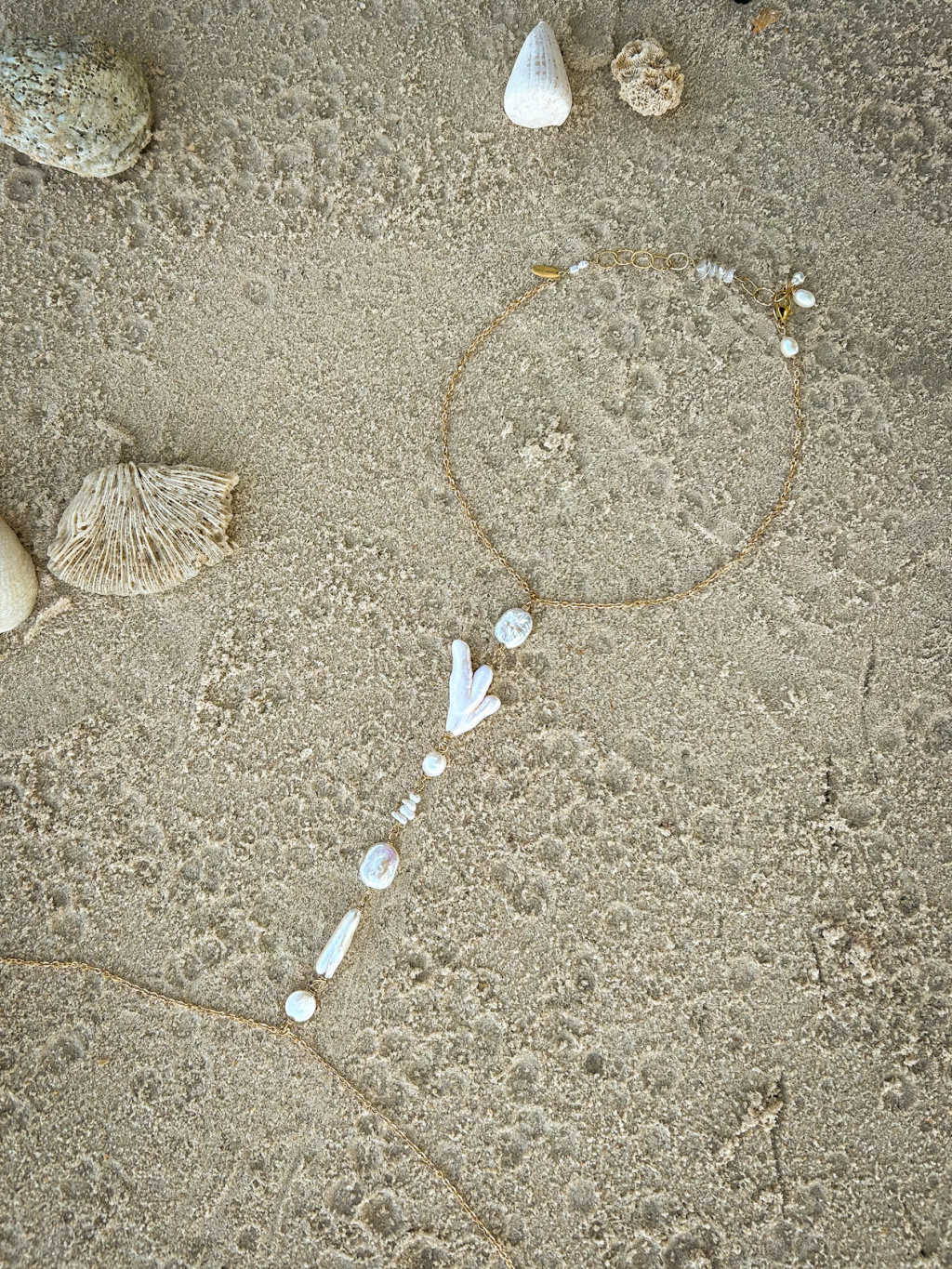 Ručně vyrobený náhrdelník přes celé tělo z pravých říčních perel a pozlacené chirurgické oceli. Délka náhrdelníku okolo krku je 37-45 cm (u náhrdelníku lze puzetkou upravovat délku), délka okolo břicha je 88-96 cm (taktéž lze puzetkou upravit délku).