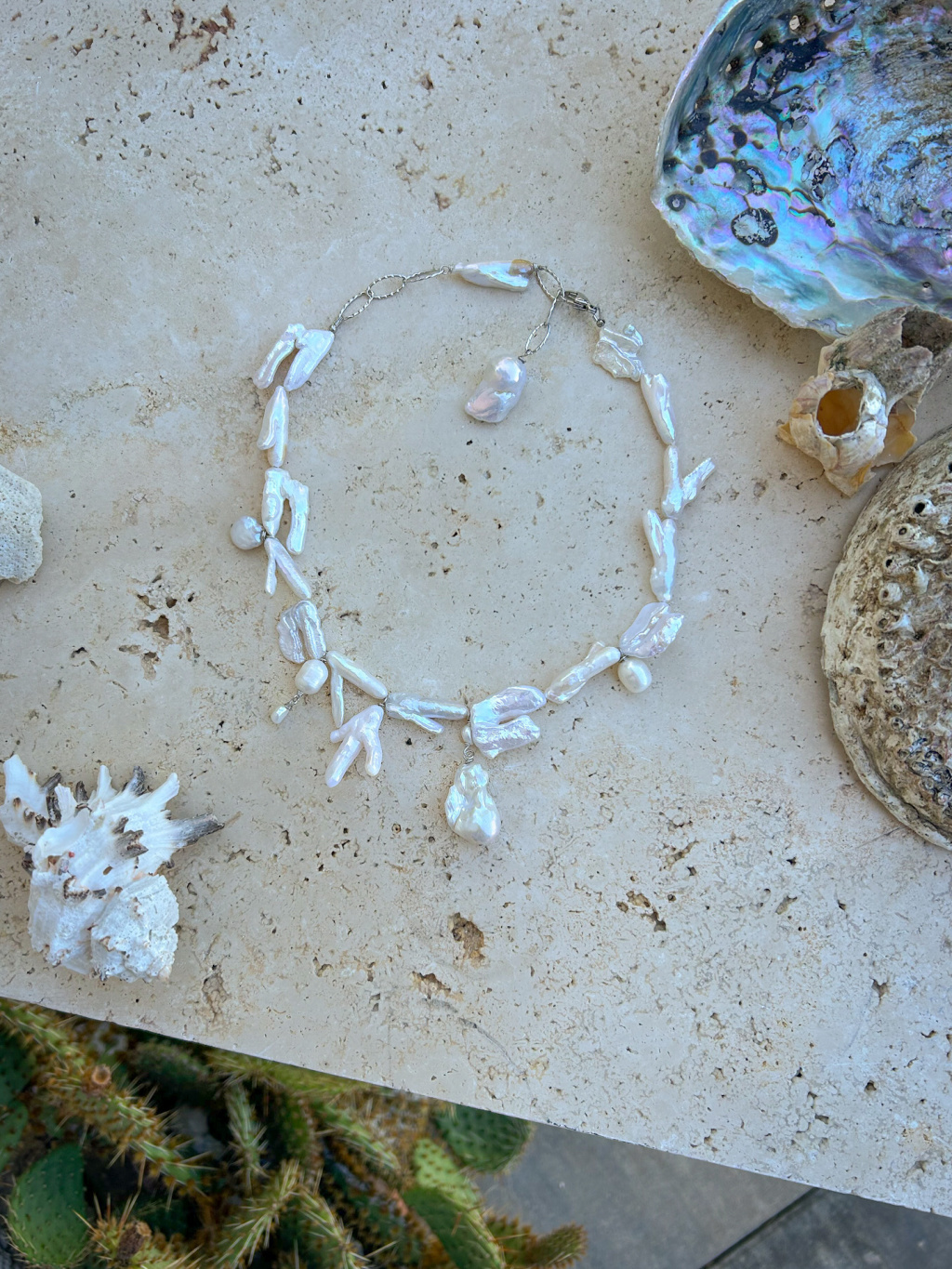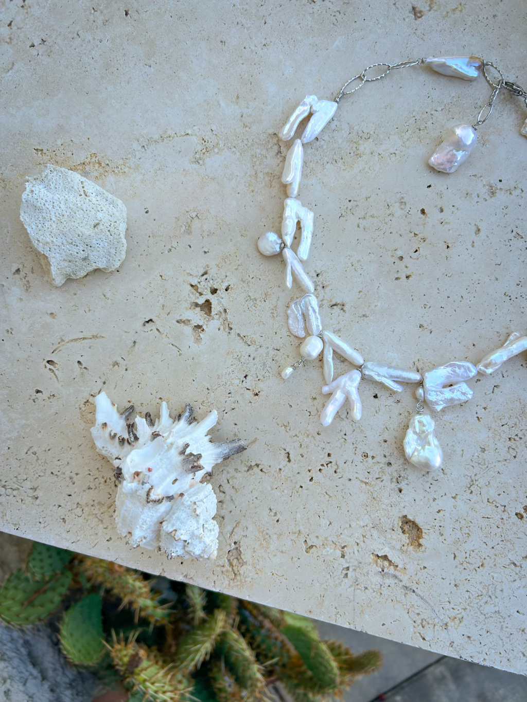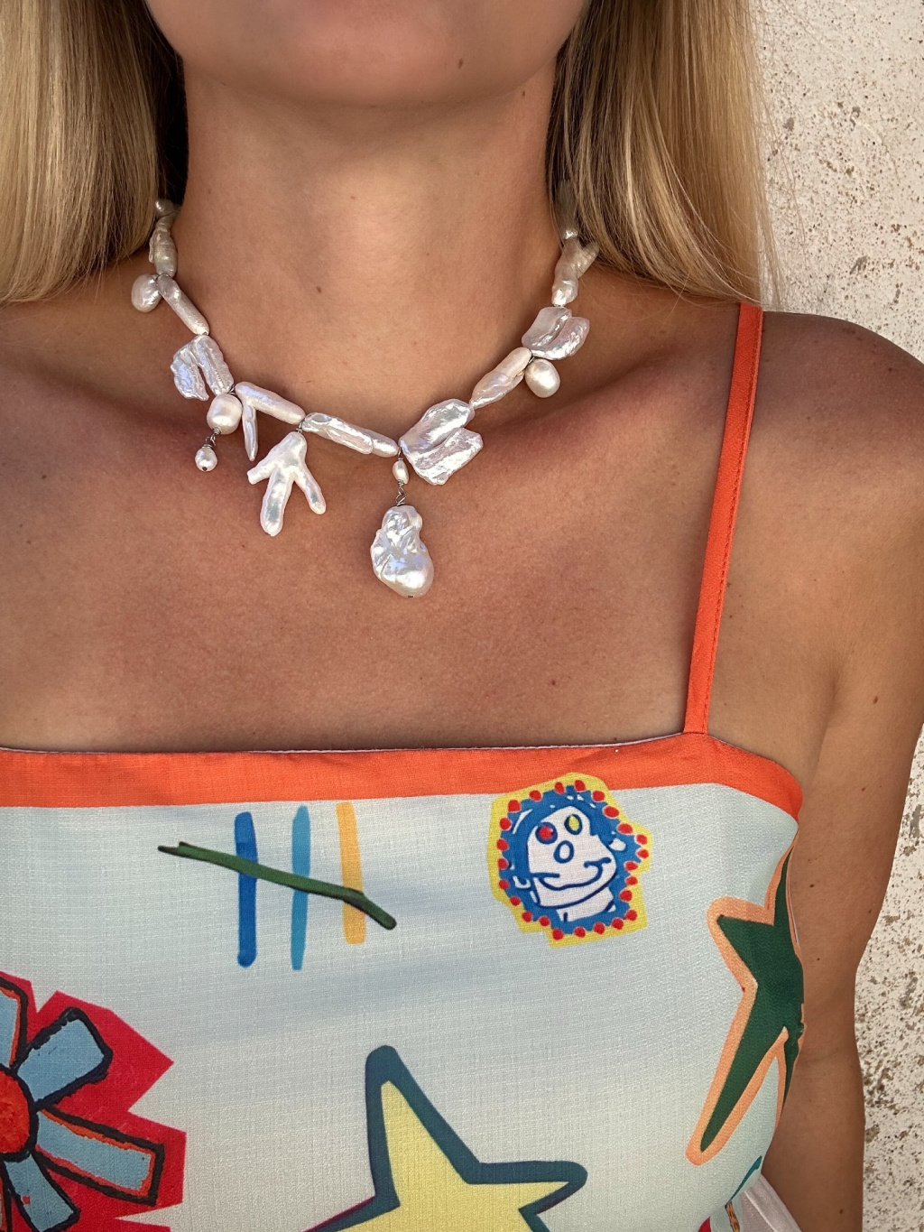 Ručně vyrobený náhrdelník z pravých říčních perel a z pozlacené chirurgické oceli.