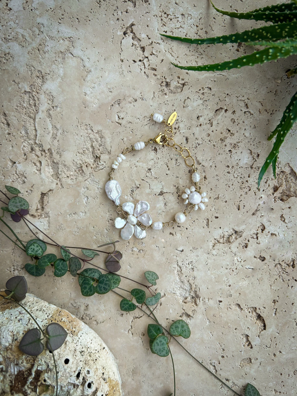 Ručně vyrobený náramek z pravých perel a pozlacené chirurgické oceli.