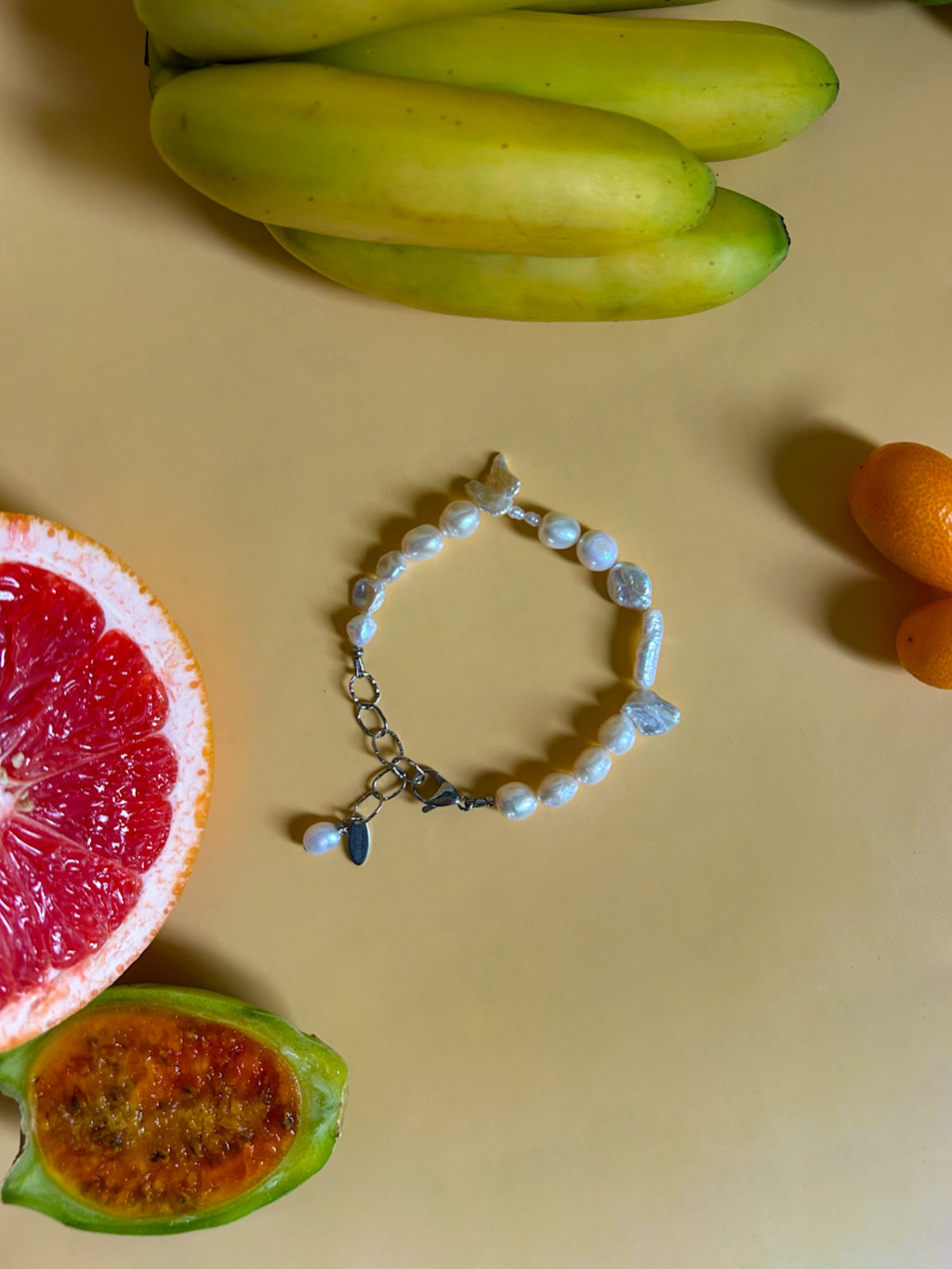 Ručně vyrobený náramek z pravých perel a chirurgické oceli.