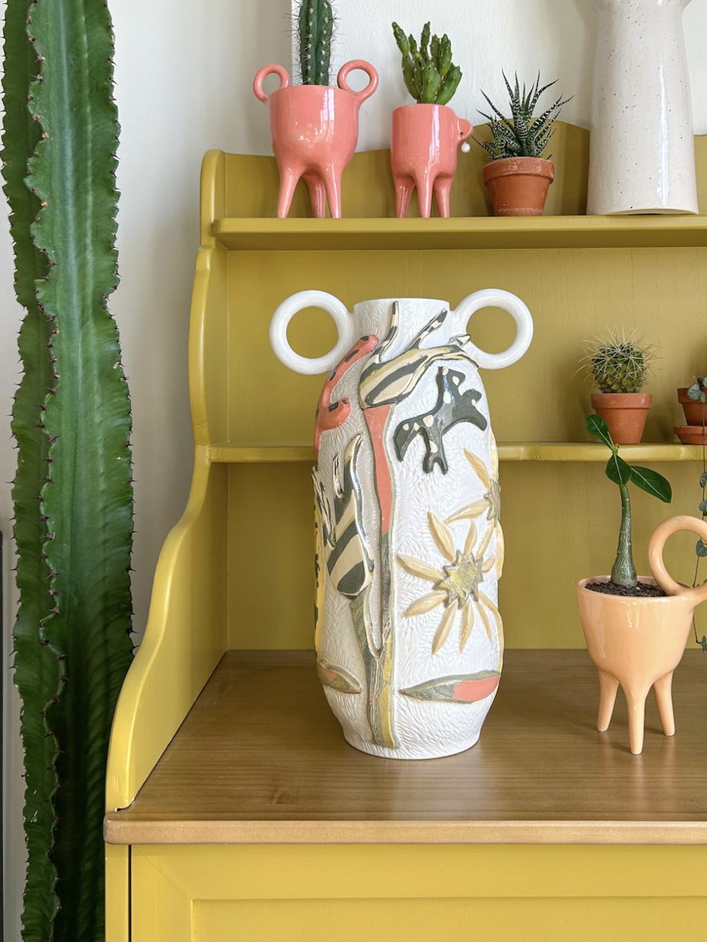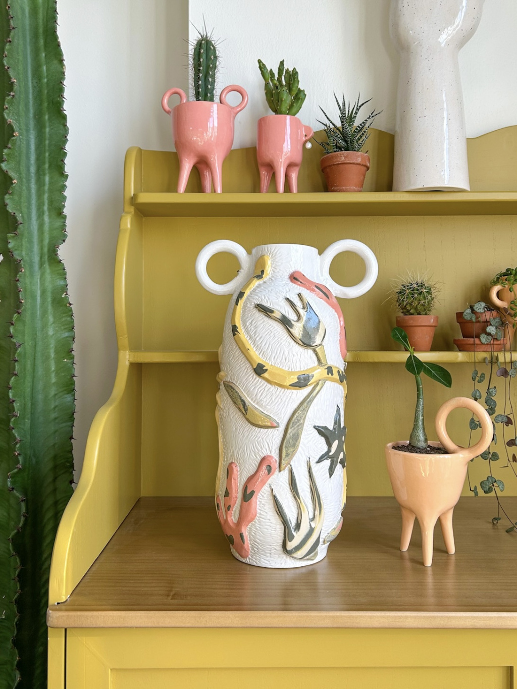 Keramická váza je ručně vyrobena u mě v ateliéru (na fotce vlevo dole). Uvnitř je nepropustná bílá glazura, do vázy lze tedy nalít vodu a naaranžovat květiny.