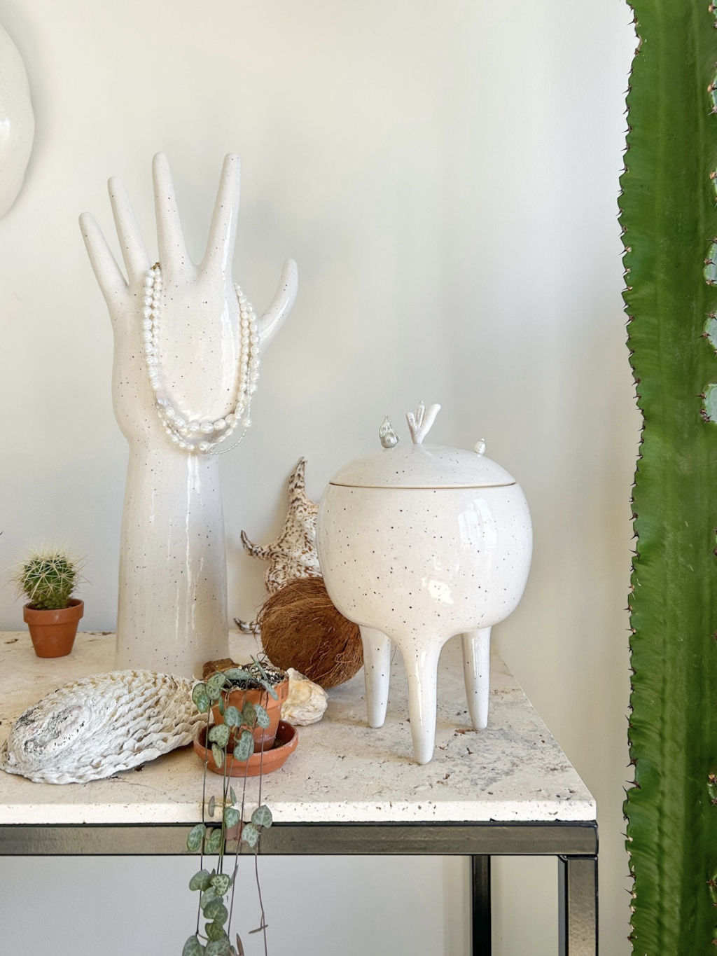 Ručně vyrobená šperkovnice z pálené keramiky dodekorovaná pravými říčními perlami.