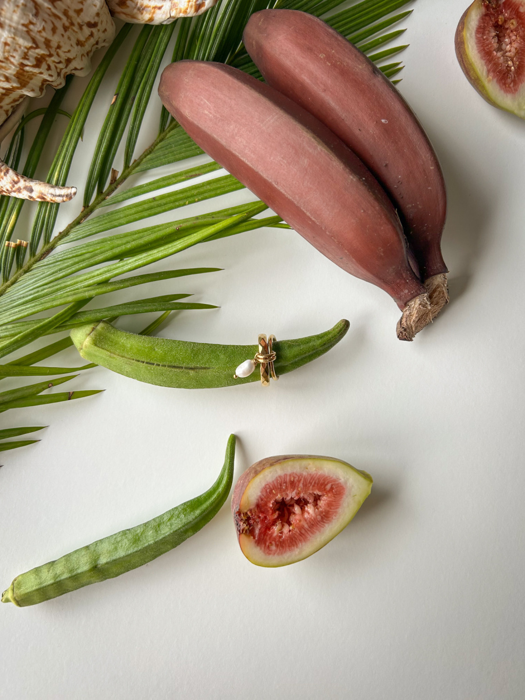 Dvojitý prsten z pozlacené chirurgické oceli s pravou říční perlou.