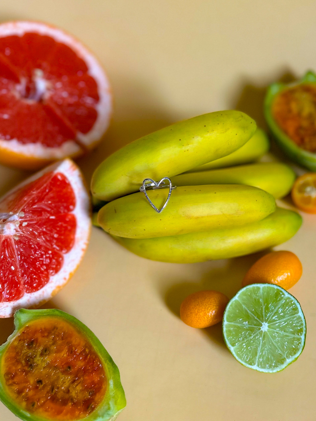 Prsten ve tvaru srdce z chirurgické oceli. Prsten lze variabilně roztáhnout a zvětšit.